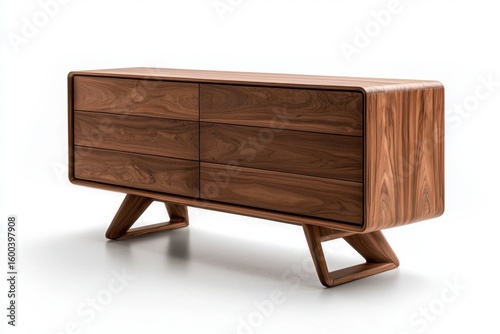 Elegant wooden sideboard design modern home interior furniture display chic environment wide angle contemporary aesthetics