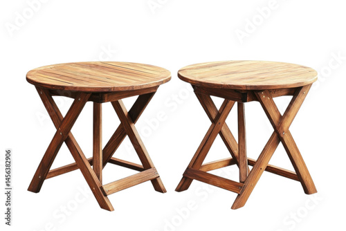Elegant Wooden Tables: Rustic Charm for Home & Cafe Design. Perfect for interiors, home decor, and on transparent background