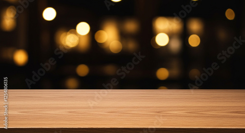 Elegant wooden texture with blurred golden lights in the background, creating a warm and inviting atmosphere