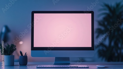 Elegant Workspace with Blank Computer Screen and Modern Decor