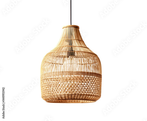 Elegant woven rattan lamp for modern home decor accents on a transparent background, cut out