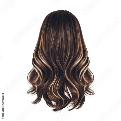 Elegante Illustration von langen, gewellten Haaren in Brauntönen.