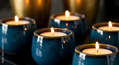 Elegantly arranged candle pots with gentle illumination creating a serene atmosphere in the room
