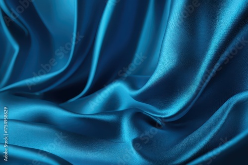 Elegantly draped cyan fabric showcases delicate folds, reflecting light in a mesmerizing dance of color and texture.