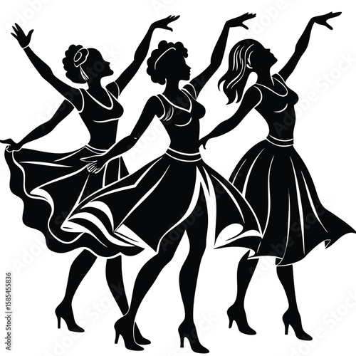 Elegantly Posed Female Silhouette Dancers Isolated on Black Background