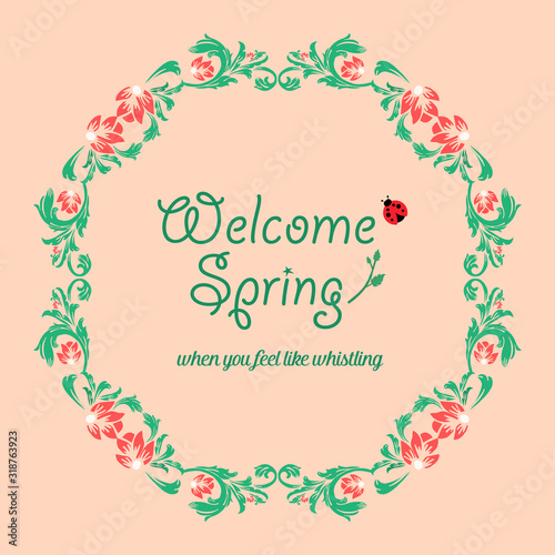 Element art design of leaves and flower frame, for welcome spring invitation card decor. Vector