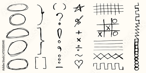 Elements for note-taking, highlighting, and underlining in Hand drawn-style text.