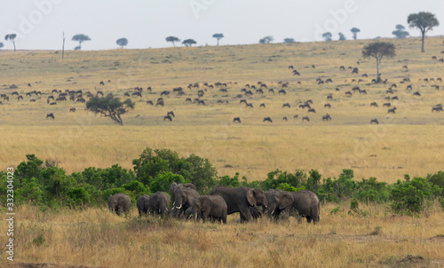 Elephant herd seen at the other side of Sand River at masai Mara, Kenya, Africa
