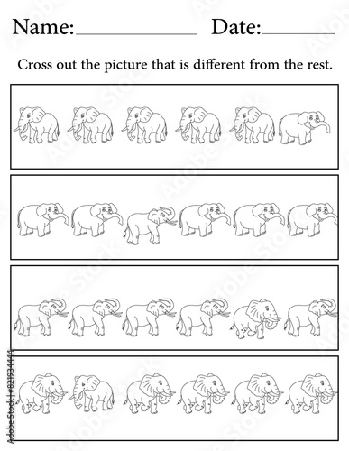 Elephant Puzzle. Printable Activity Page for Kids. Educational Resources for School for Kids. Kids Activity Worksheet. Find the Different Object