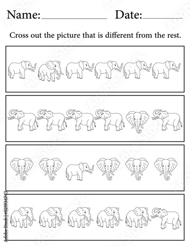 Elephant Puzzle. Printable Activity Page for Kids. Educational Resources for School for Kids. Kids Activity Worksheet. Find the Different Object