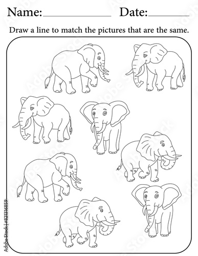 Elephant Puzzle. Printable Activity Page for Kids. Educational Resources for School for Kids. Kids Activity Worksheet. Match Similar Shapes