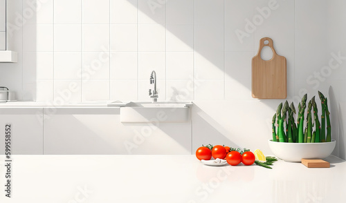 Elevate Your Cooking Experience with our Clean and Minimal White Marble Kitchen Countertop 3D Product Display.