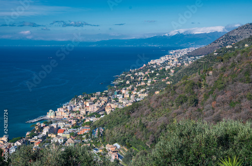 Elevated view along the coastline of Genoa