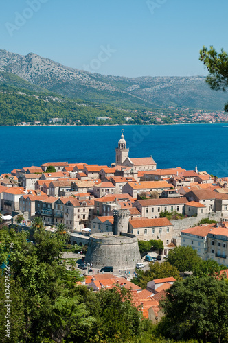 Elevated view of the Old Town, Korcula, Croatia
