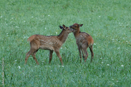 Elk calves playing