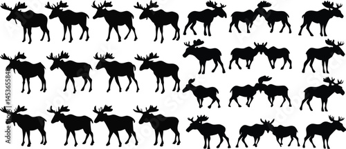 Elk moose bull mammal black silhouette animal. Vector Illustrator.