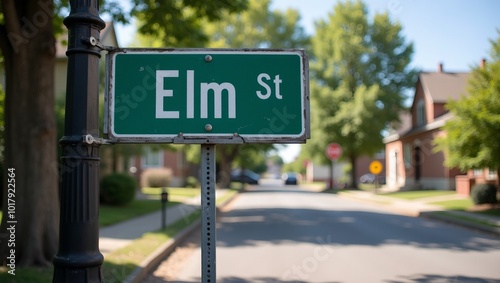 Elm Street sign on sunny urban street