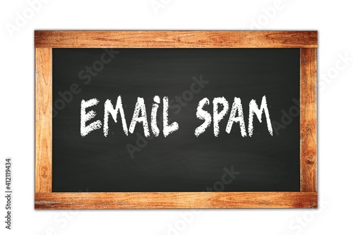 EMAIL SPAM text written on wooden frame school blackboard.