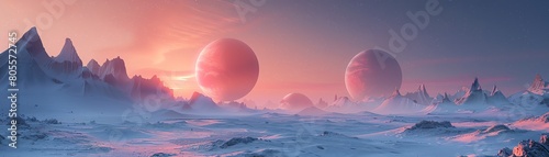 Embark on a cosmic journey through a blend of CG 3D and photorealistic textures, showcasing surreal landscapes and futuristic elements