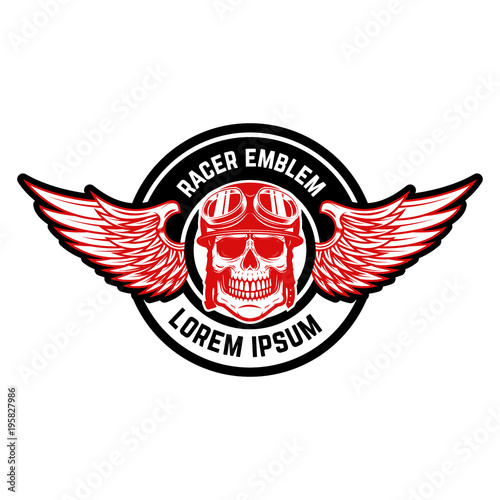 Emblem template with biker skull and wings. Design element for logo, label, emblem, sign, badge.