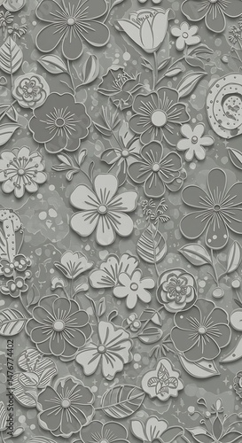 Embossed Bloom Stone Garden's Whisper Grey Floral Tapestry Monochromatic Meadow Silvered Petals Floral Embossing Whisper of Grey Embroidered Bloom Grey Garden Dreams Stone-Etched Blooms
