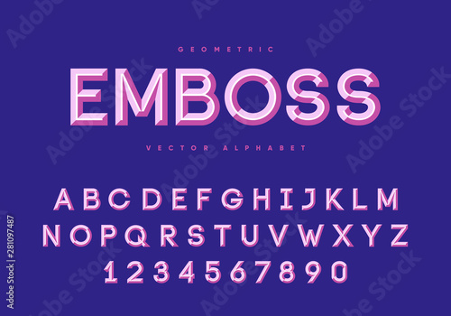 Embossed font design. Alphabet and numbers. Esp10 vector.