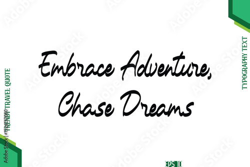 Embrace Adventure, Chase Dreams Cursive Typography Lettering Trendy Traveling Quote