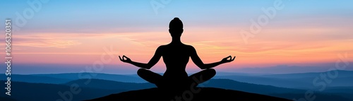 Embrace tranquility a serene silhouette practicing meditation against a breathtaking sunset landscape