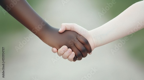Embracing unity diverse children shaking hands in nature close-up symbolizing friendship and inclusivity