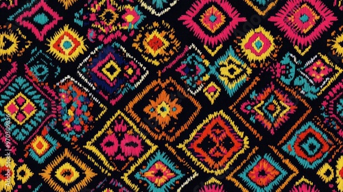 Embroidered Seamless Ethnic Ornament Colorful Mat Bohemian Satin Stitch Slavic Scarf Pattern Satin Stitch Rhombus Background Native Colorful Motley Print