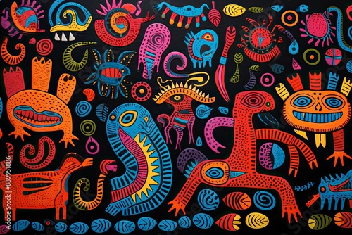 Embroidery Mexican Textile Pattern eith Unique Floral and Animal Motifs. Guna Yala Heritage Unveiled Vibrant Panama Mola Tapestry people of central Mexico