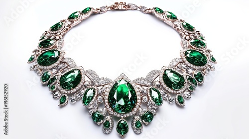 Emerald & Diamond Necklace: Watercolor 3D Rendering - Bold & Elegant Jewelry Design