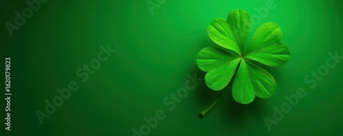 Emerald background with four-leaf clover in center, lucky symbol, good luck, earthy tones