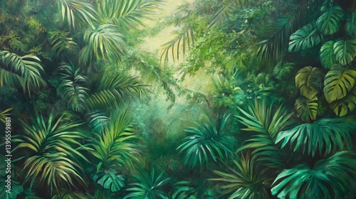 Emerald Canopy: A Vibrant Rainforest Painting, Lush Greenery and Tropical Plants