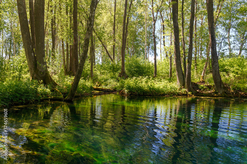 Emerald colored freshwater springs. Puhatu allikad (Sacred springs), Saaremaa, Estonia.