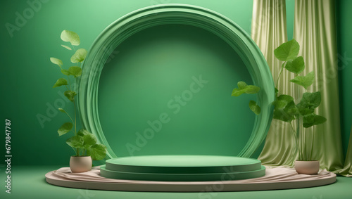 Emerald Elegance: Luxurious 3D Podium with Nature’s Touch