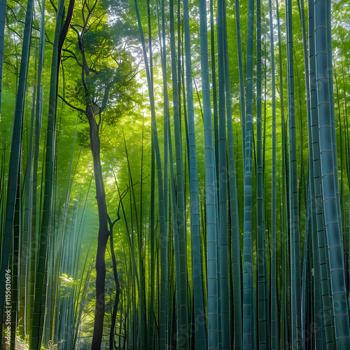 Emerald Enclave: A Meditative Walk Through a Bamboo Forest Bathed in Sunlight