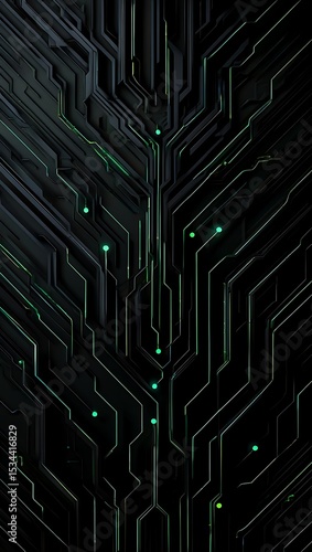 Emerald pathways illuminate a dark, intricate circuit board, a futuristic design glowing with technological energy