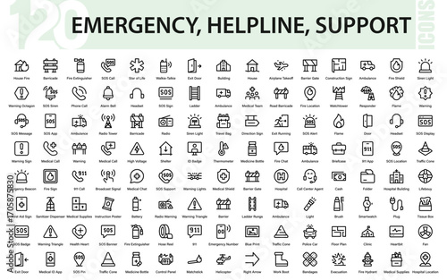 Emergency, helpline and support Professional Line Icon Set – Modern Minimal Outline Vector Collection for Support, Crisis Call, Hotline and Assistance Services
