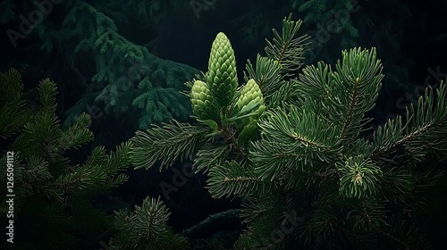 Emerging Pine Cone: A Springtime Forest Close-Up AI Generated