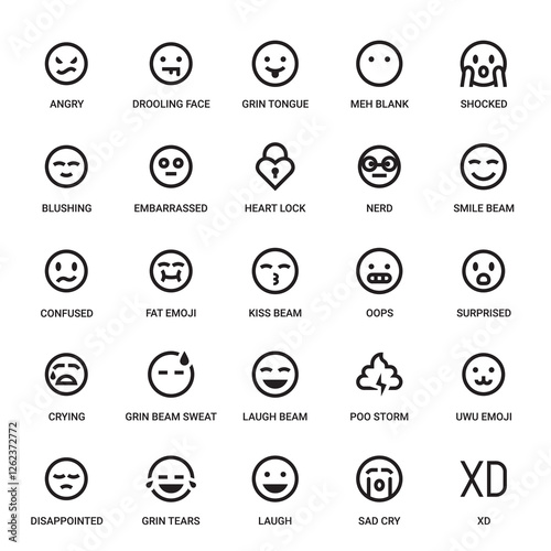 Emoji Category Outline Pictogram Icons Set