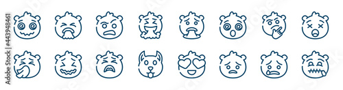 emoji icons set such as disgusted emoji, vomit emoji, curious sneezing ti cry outline vector signs. symbol, logo illustration. linear style icons set. pixel perfect vector graphics.