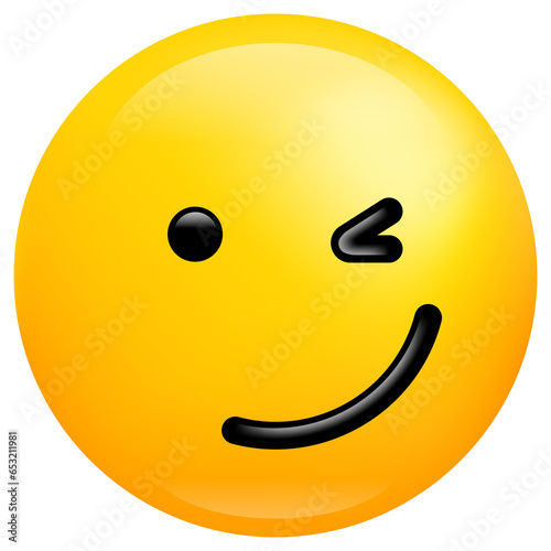 Emoji smile icon symbol. Winking face yellow cartoon character.