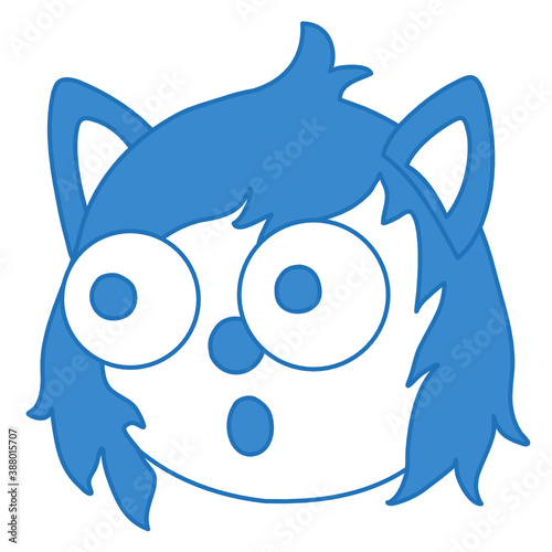 emoticon wolf with popped out eyes, funny cartoon character with simplistic facial expression, simple hand drawn line icon from a set, vector illustration