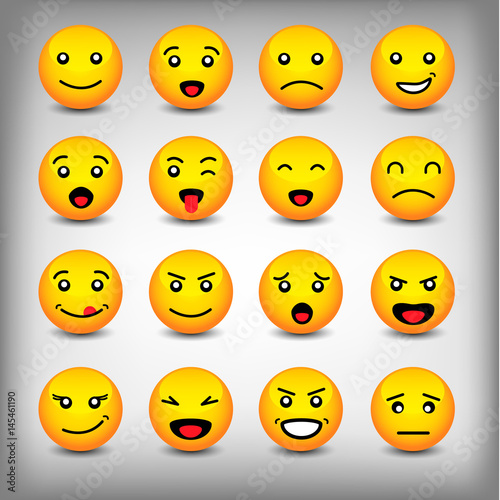Emoticons set isolated on white background. Funny emoticons with hands
