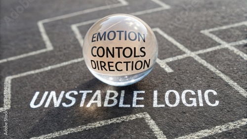 Emotion as a Force Shaping Direction in a Maze of Unstable Logic Symbolized by a Glass Sphere on a Dark Surface