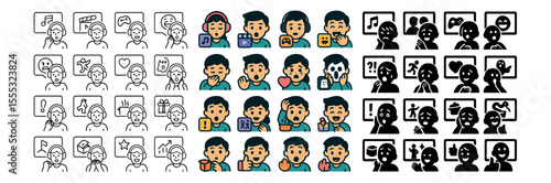 Emotion expression icons set – flat, feelings and mood representation symbols