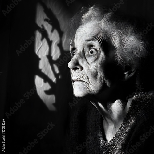Emotional Closeup of Elderly Woman s Pensive Facial Expression in Dramatic Black and White