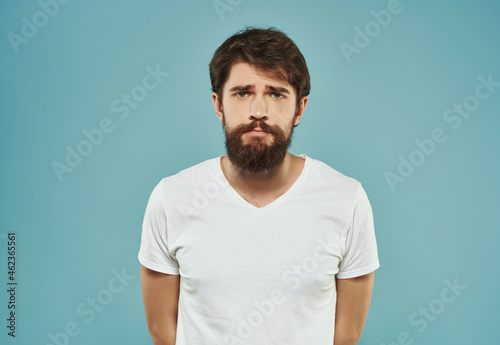 emotional man in a white t-shirt expressive look discontent close-up