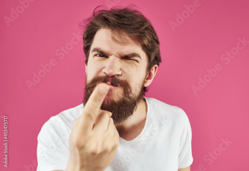 emotional man in a white t-shirt surprised look close-up